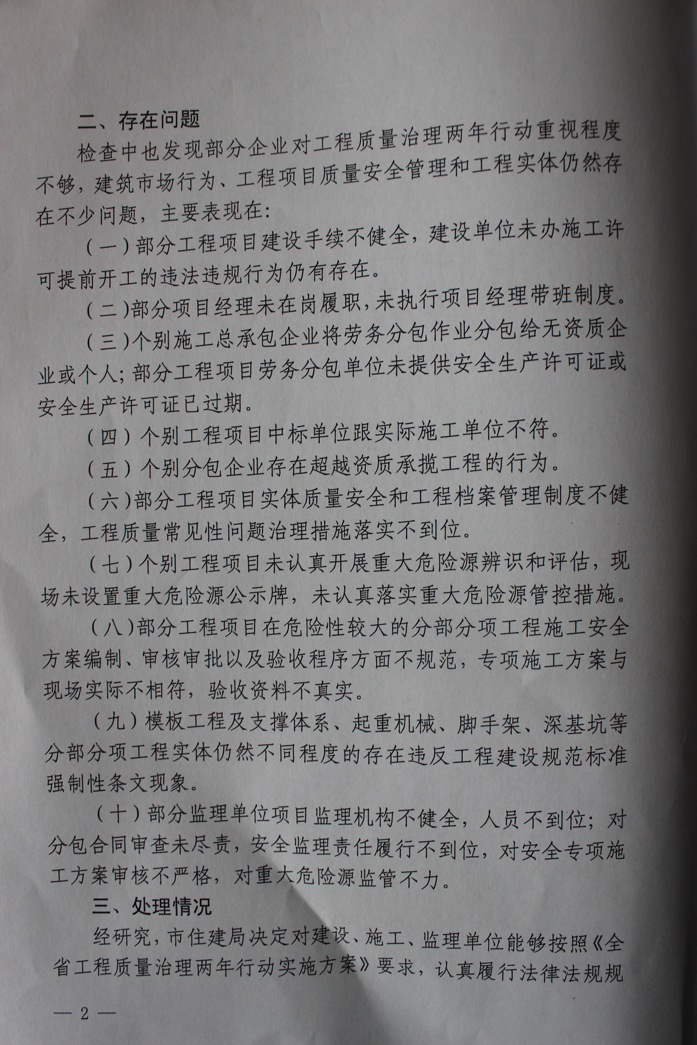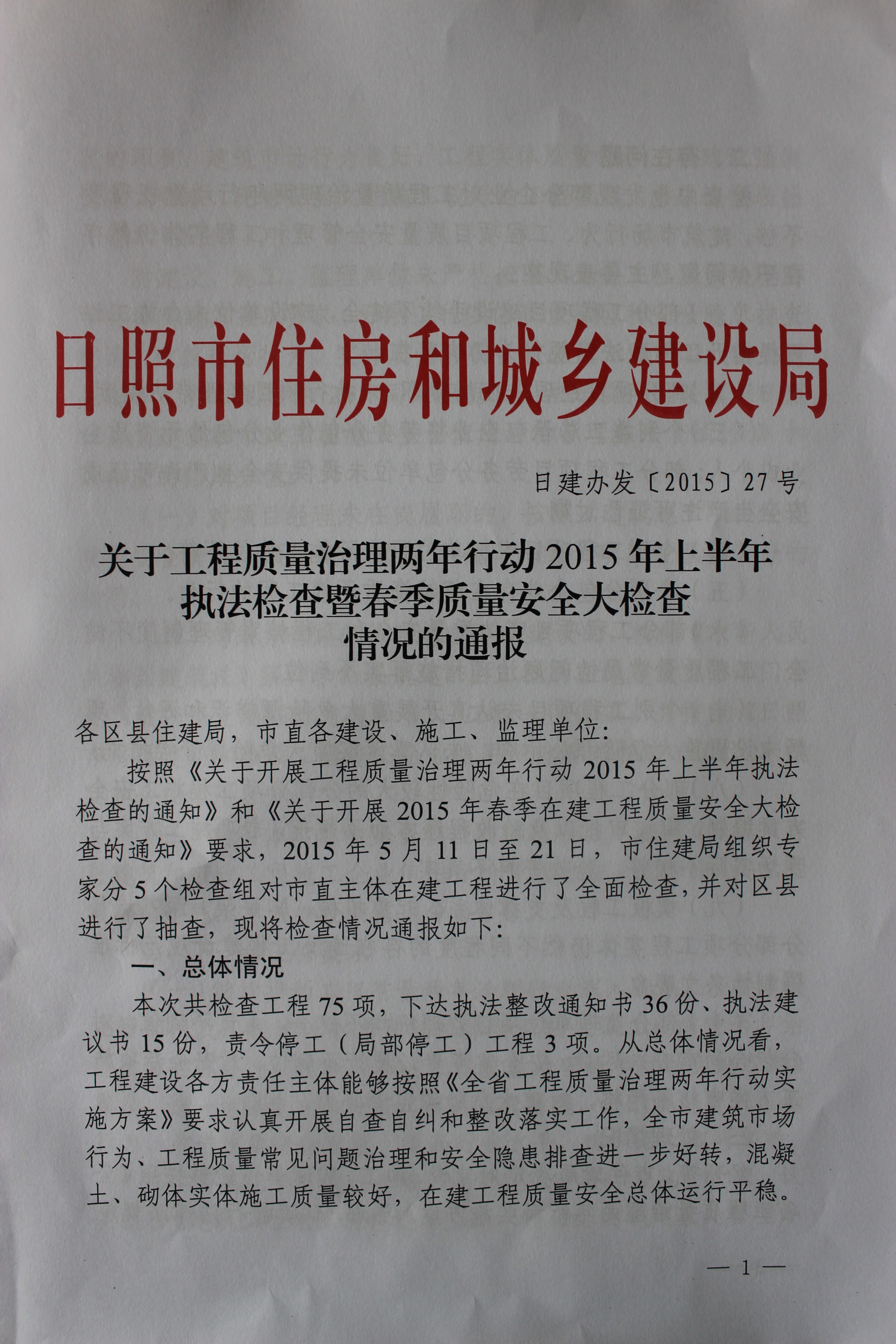 关于工程质量治理两年行动2015年上半年 执法检查暨春季质量安全大检查 情况的通报