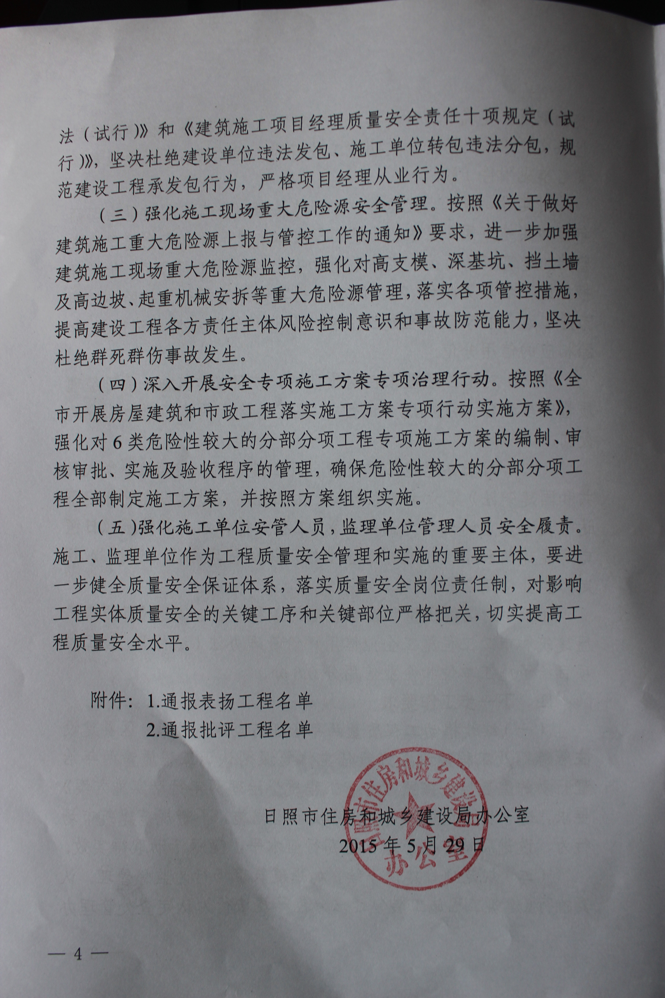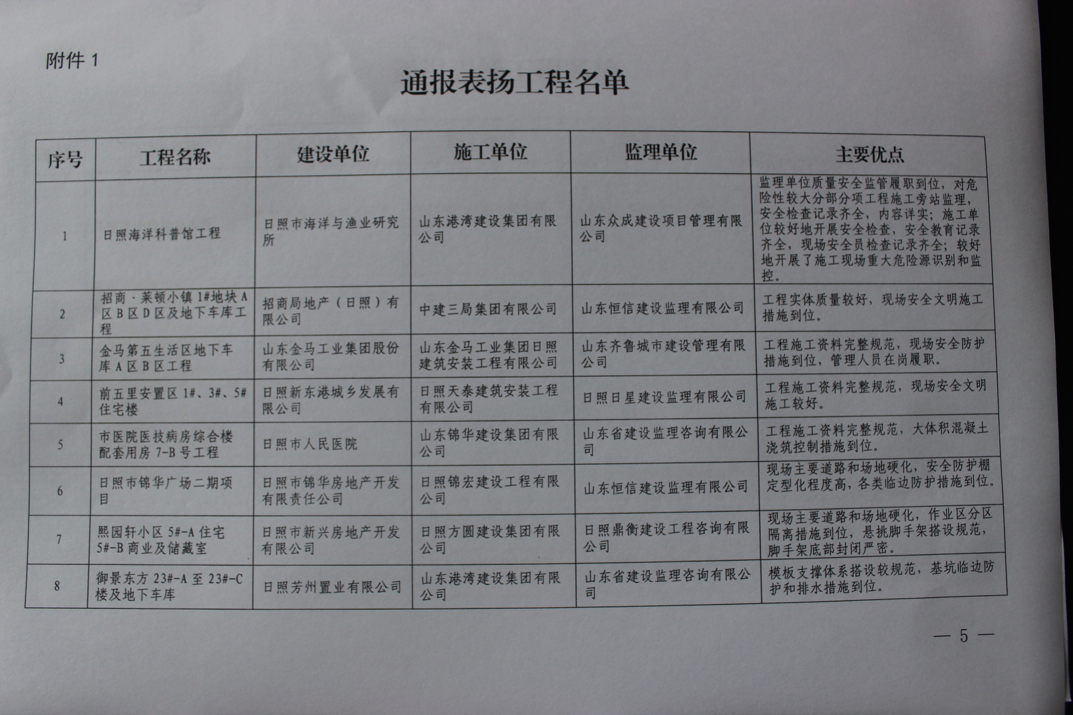日照市建设工程质量安全监督站 关于对中铁建工集团有限公司等单位进行表彰奖励的通报