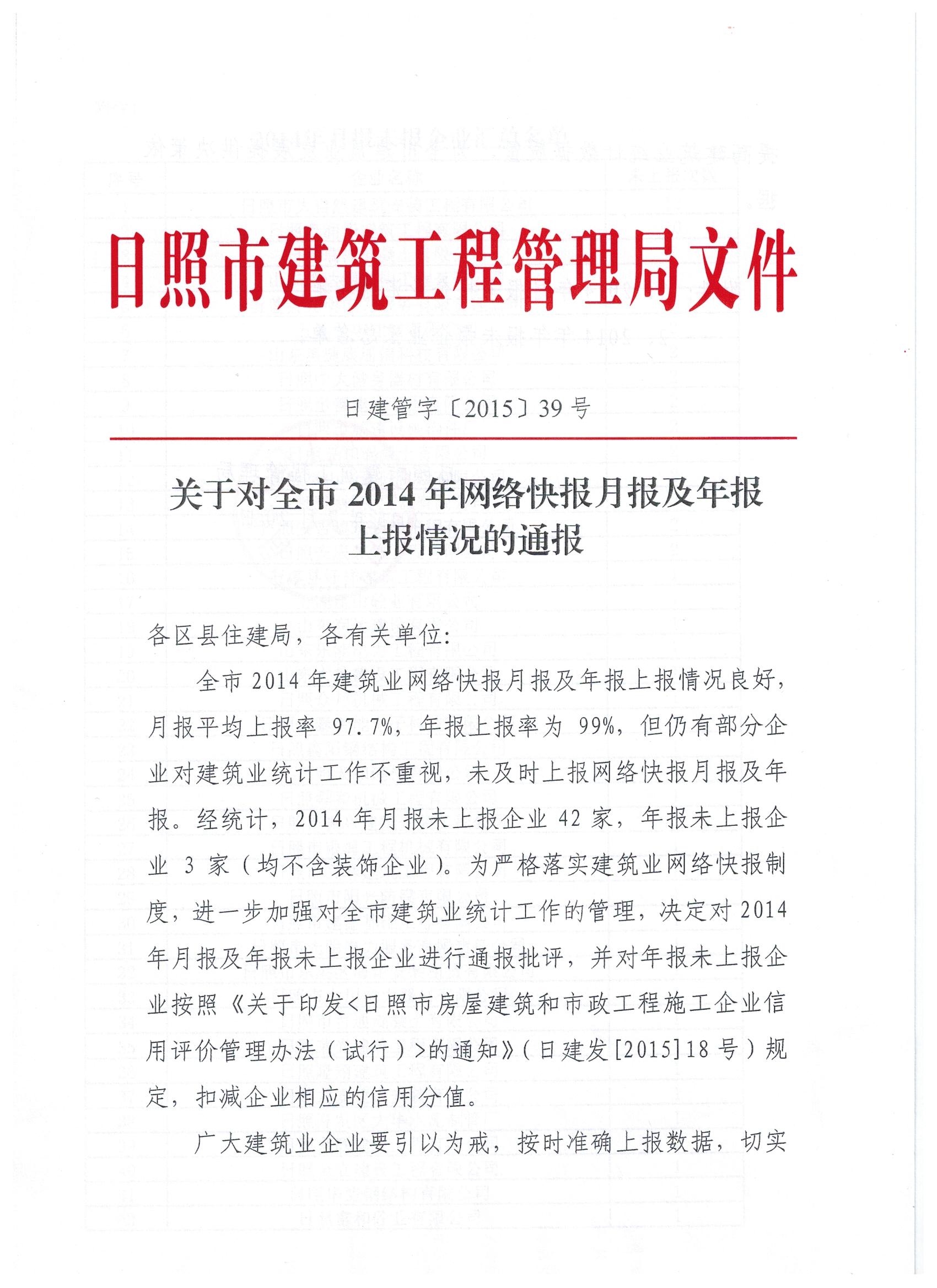 关于对全市2014年网路快报月报及年报上报情况的通报