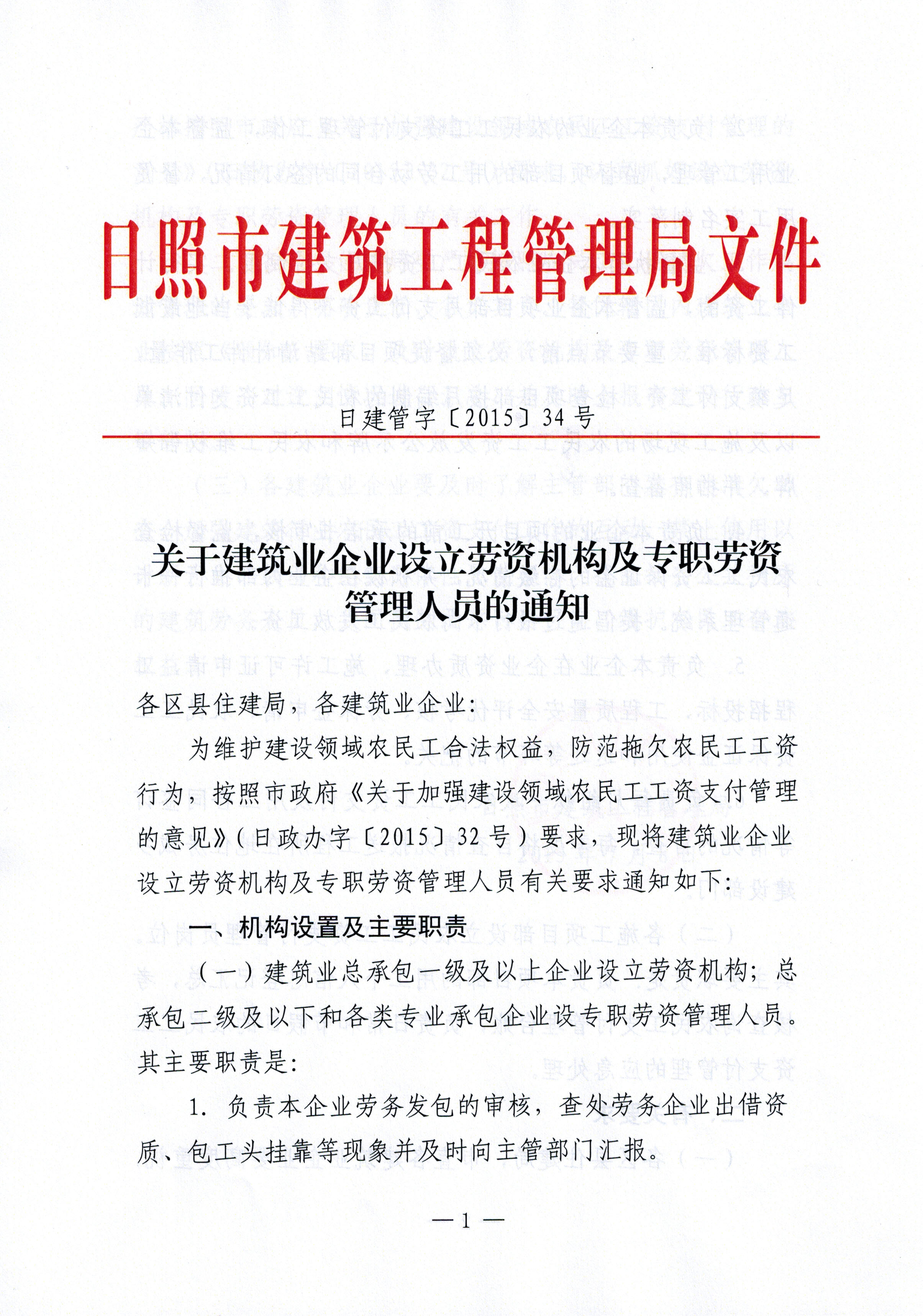 关于建筑业企业设立劳资机构及专职劳资管理人员的通知