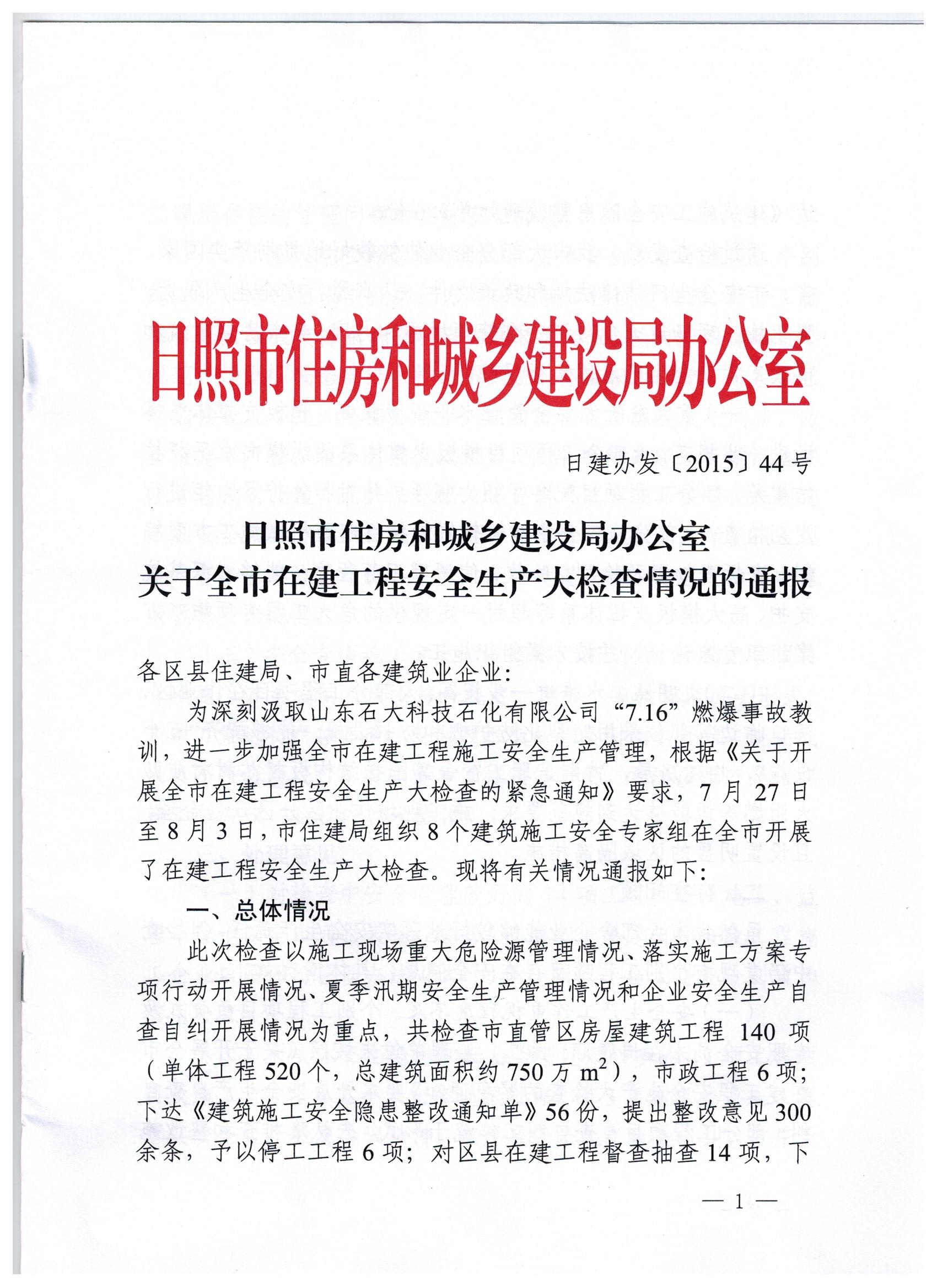 日照市建设工程质量安全监督站 关于对中铁建工集团有限公司等单位进行表彰奖励的通报