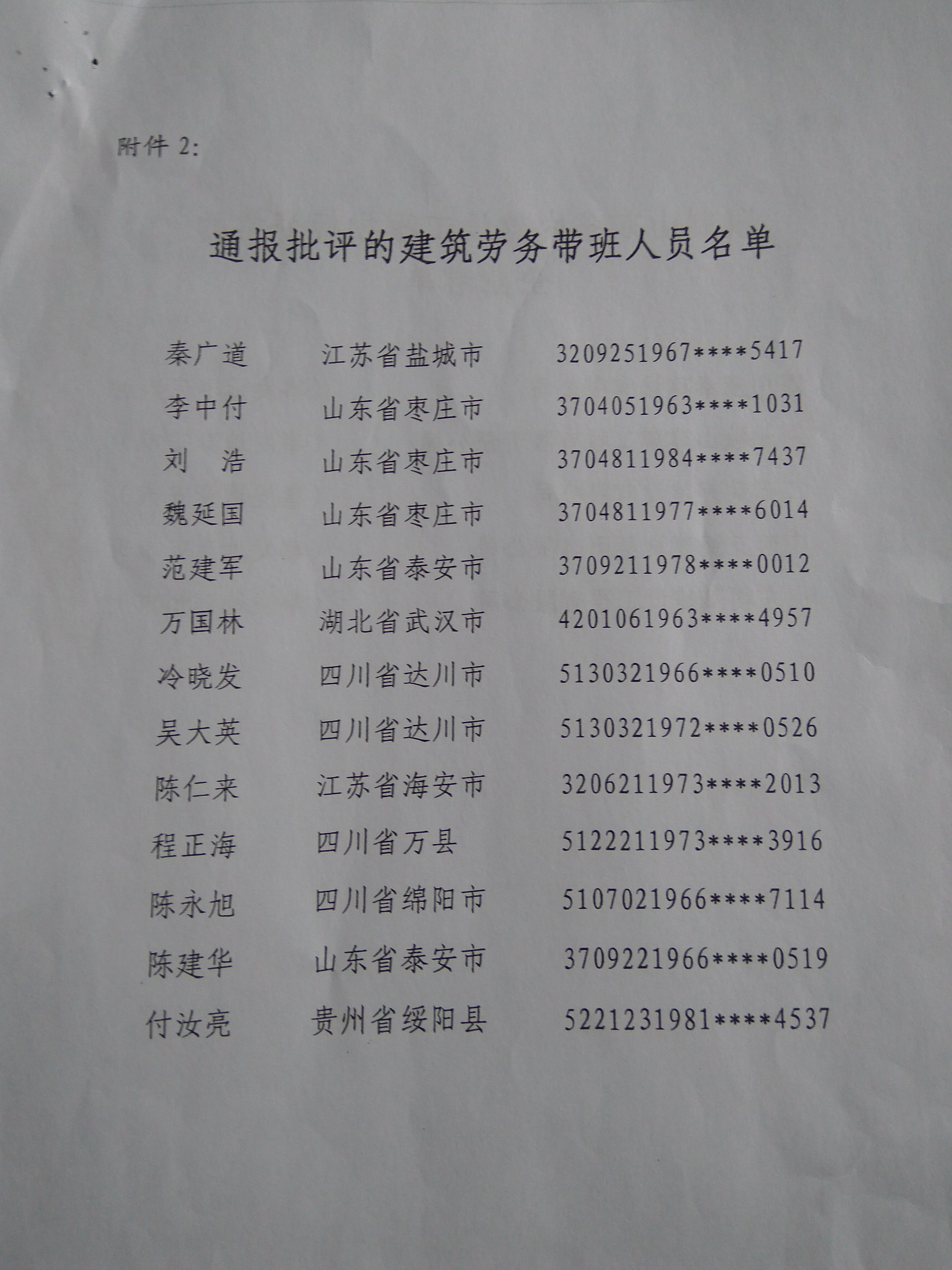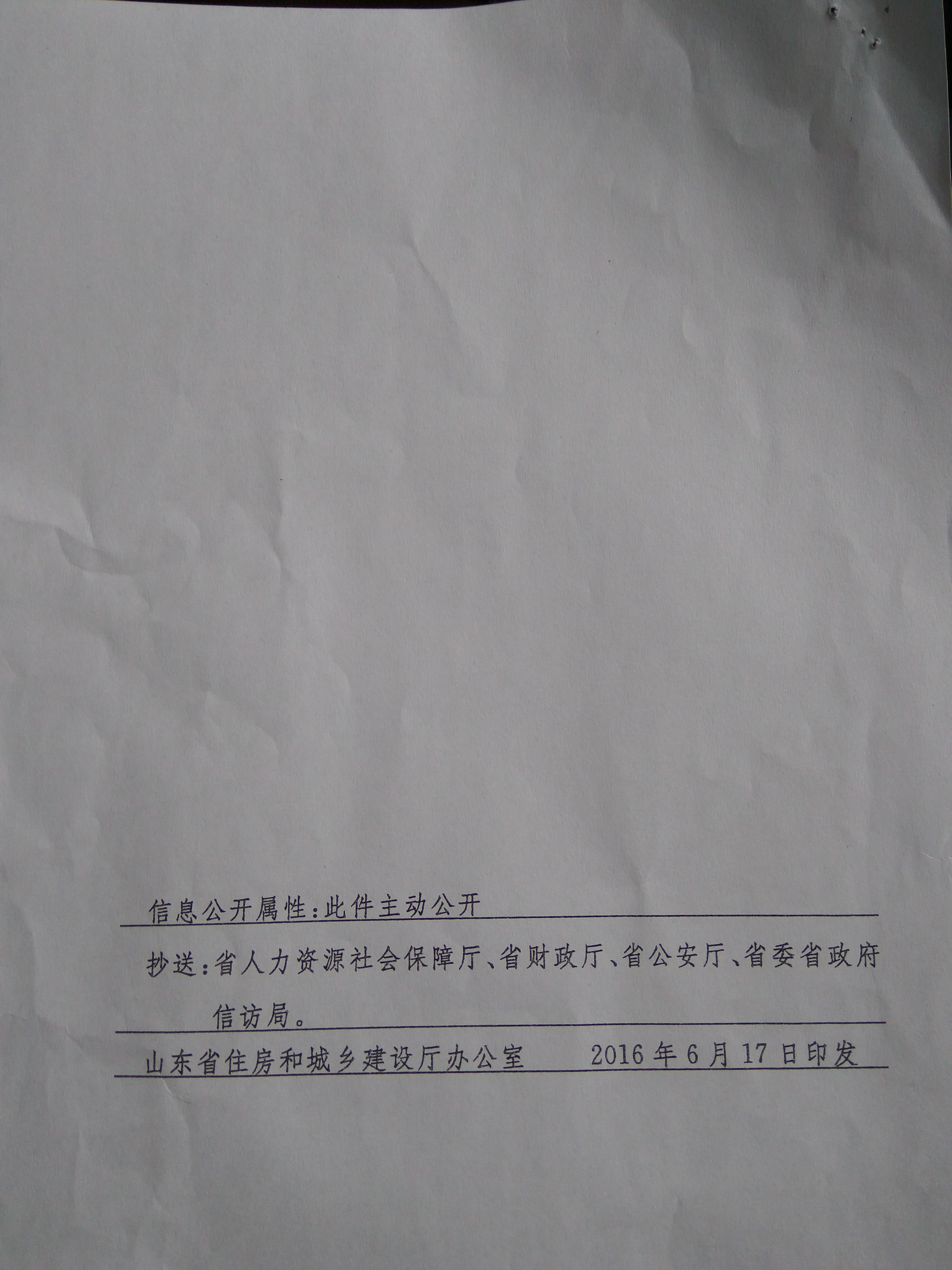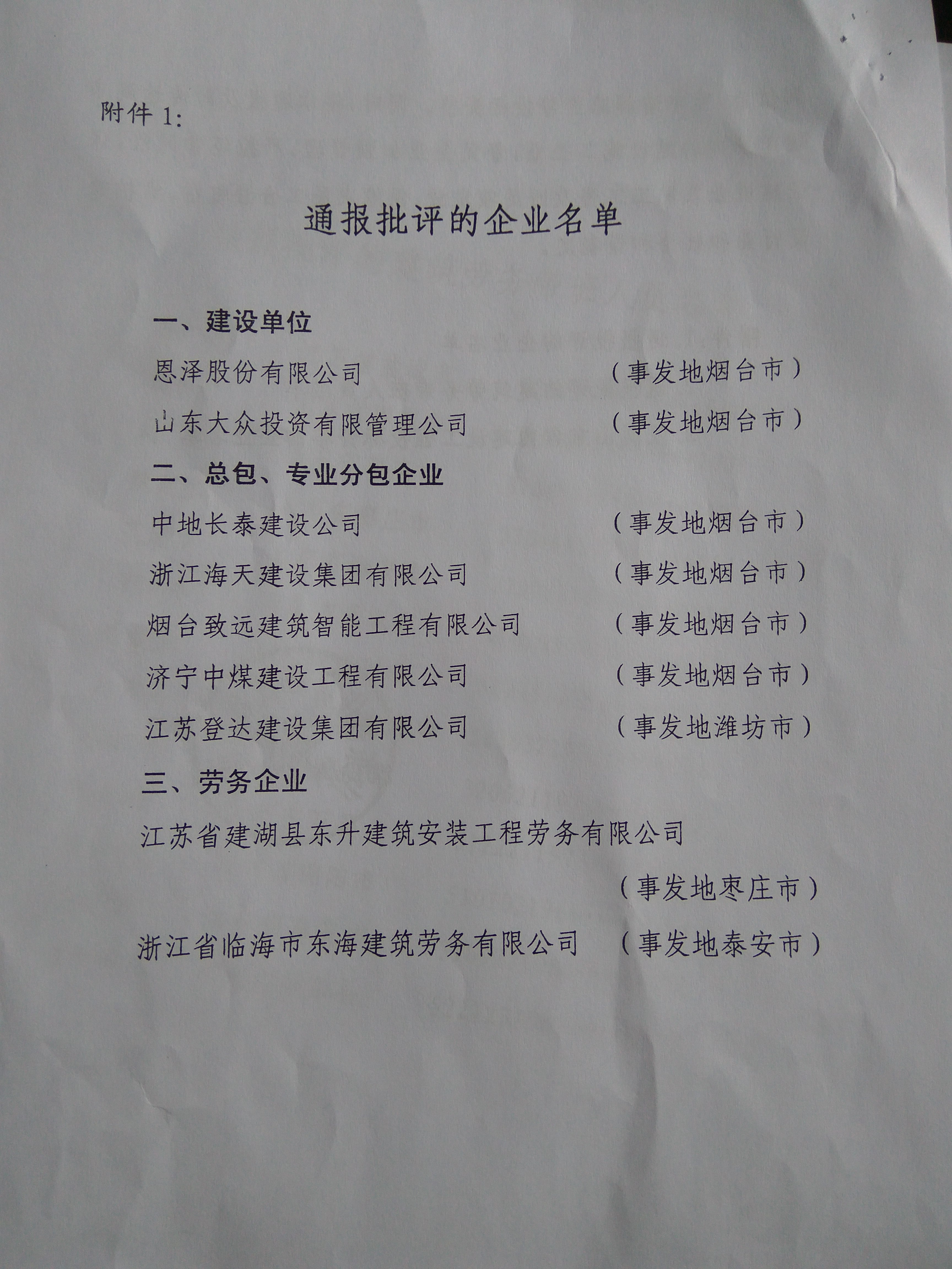 转发山东省住房和城乡建设厅《关于2015年拖欠农民工工资引发群体性事件工程建设主体处理结果的通报》